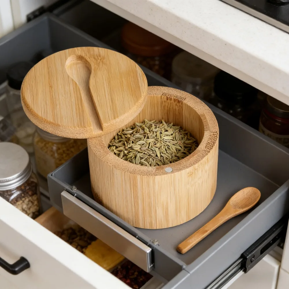 Bamboo Seasoning Jar Set with Lids for Salt Sugar Pepper Storage Kitchen Countertop Organizer Dining Table Condiment Gadgets $8.62