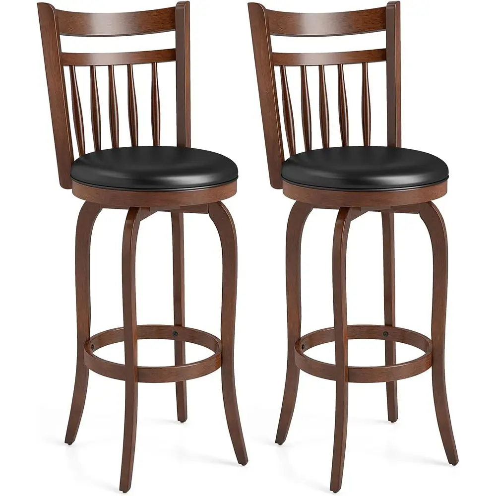 Pair of 30 Swivel Bar Stools with Leatherette Upholstery, Backs, and Footrests for Kitchen Island, Home Bar, or Dining Room $181.83