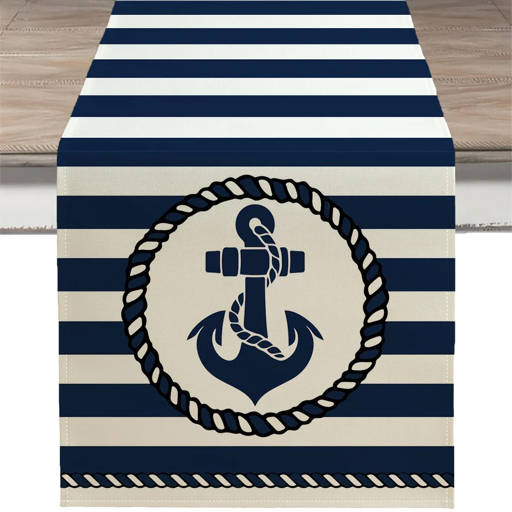 Nautical Anchor Stripe Table Runner 2D Single Print Coastal Stylish Table Runner Home Dining Room Kitchen Patio Beach Vibe Decor $6.98