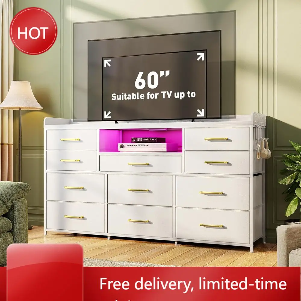 PopularLED-Lit Bedroom Furniture with Charging Station, Hooks, and Storage for 50-60 Inch TVs $106.41