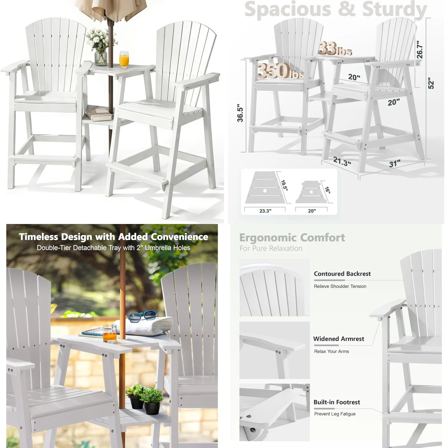 Tall HDPE Adirondack Chair Set Bar Height Double Tray All Weather Heavy Duty Outdoor Garden Backyard White, Customized $215.45