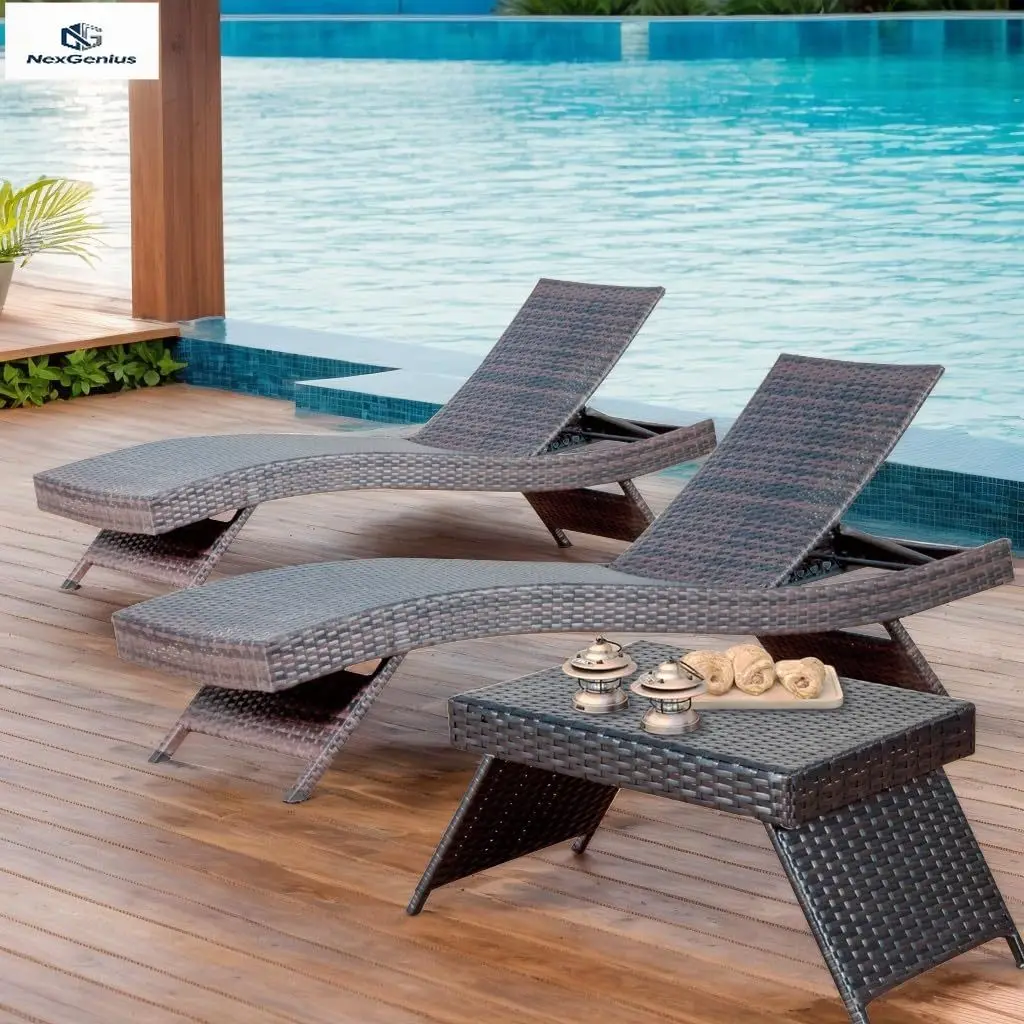 Outdoor Chaise Lounge Set Two With Side Table Patio Pool Recliner Sunbathing Furniture For Beach Poolside $328.46