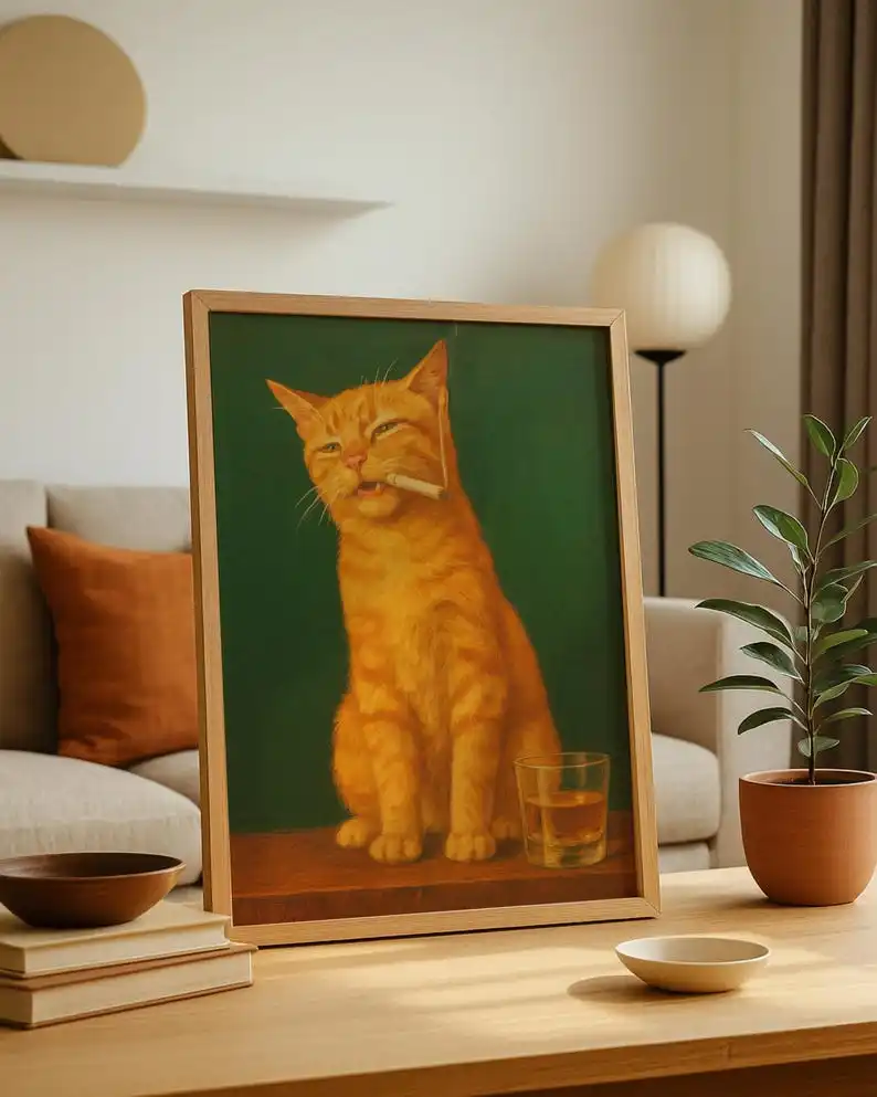Vintage Moody Cat with A Cigarette Canvas Print Frameless Retro Orange Cat Wall Art Poster for Living Room and Bedroom Decortion $2.59