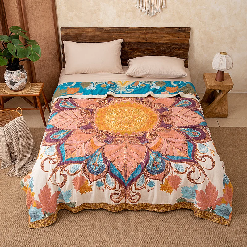 Retro Cotton Gauze Woven Throw Blanket Soft Breathable Terry Cloth Blanket for All Seasons Lightweight Home Office Nap Bedding $38.99