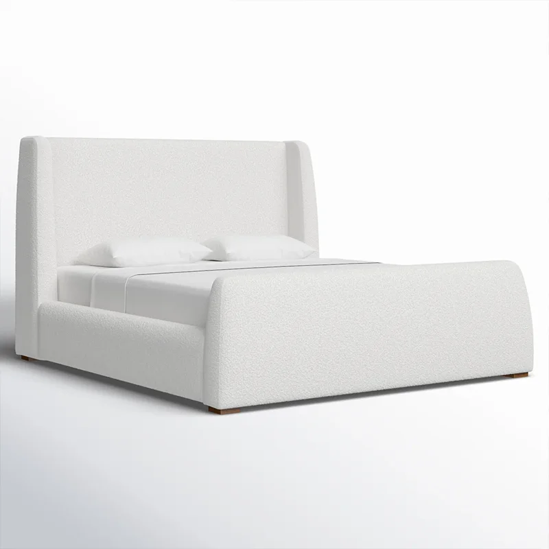 # Nordic Cozy Creamy Lazy Boucle Fabric Solid Wooden Double Bed Frame Furniture for Bedroom Hotel Apartment Villa $1,238.58