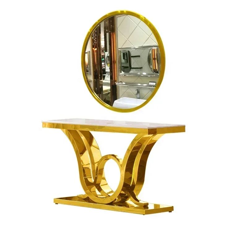 China Supplier Living Room Furniture Gold Stainless Steel Mirrors Console Table Matching Mirrored Console Table factory price $734.32