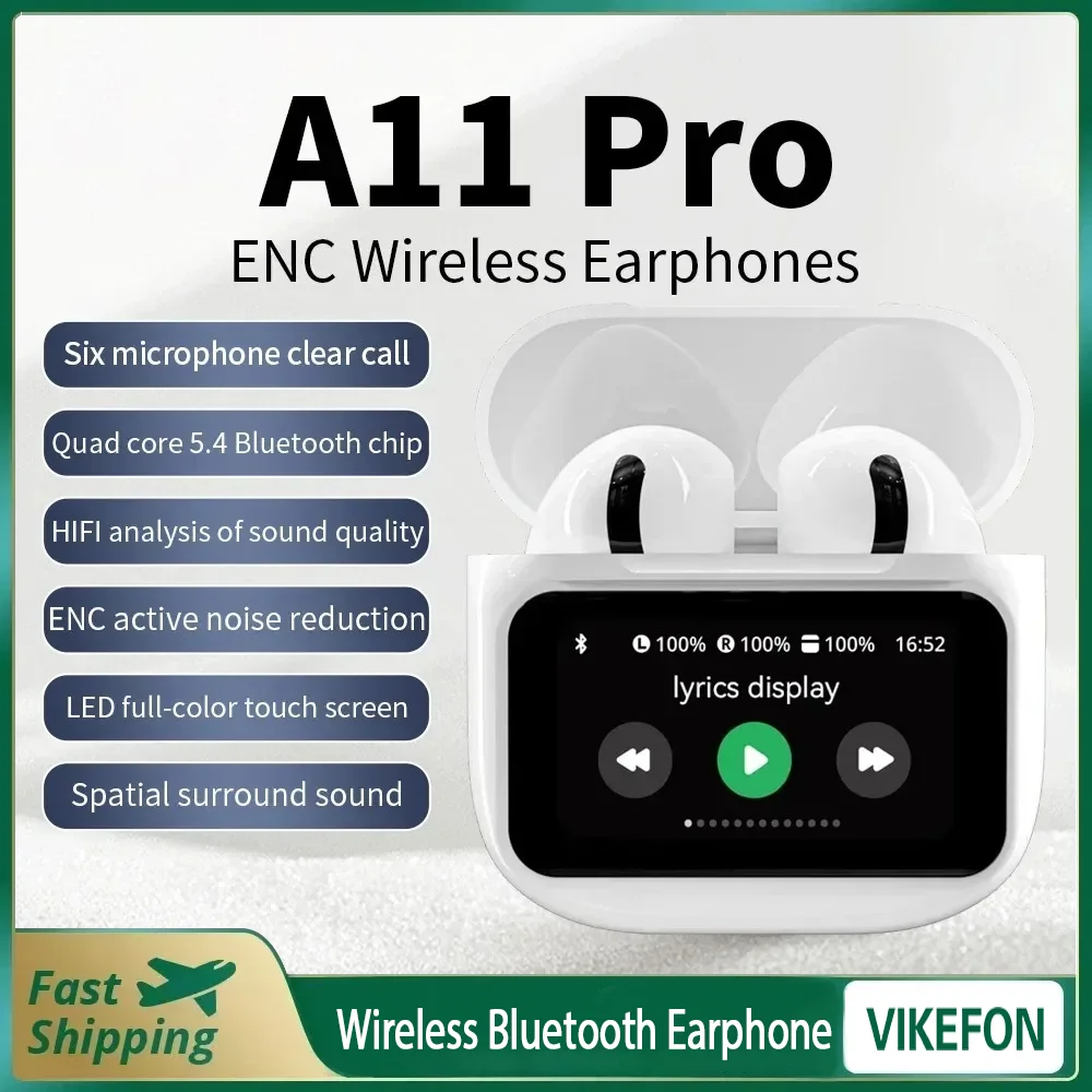 A11 Pro TWS Wireless Earbuds Touch Control LCD Screen Earphone with ENC Noise Cancelling Super Bass Premium Sound Long Battery $16.15