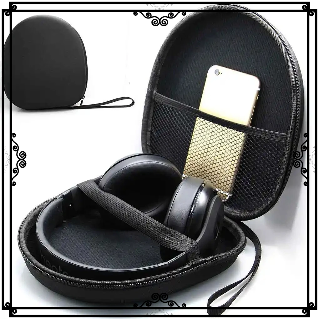 Headphone Carrying Case Shockproof Headset Pouch Capacity Handheld Earphone Container Company Travel Supplies Black $12.28