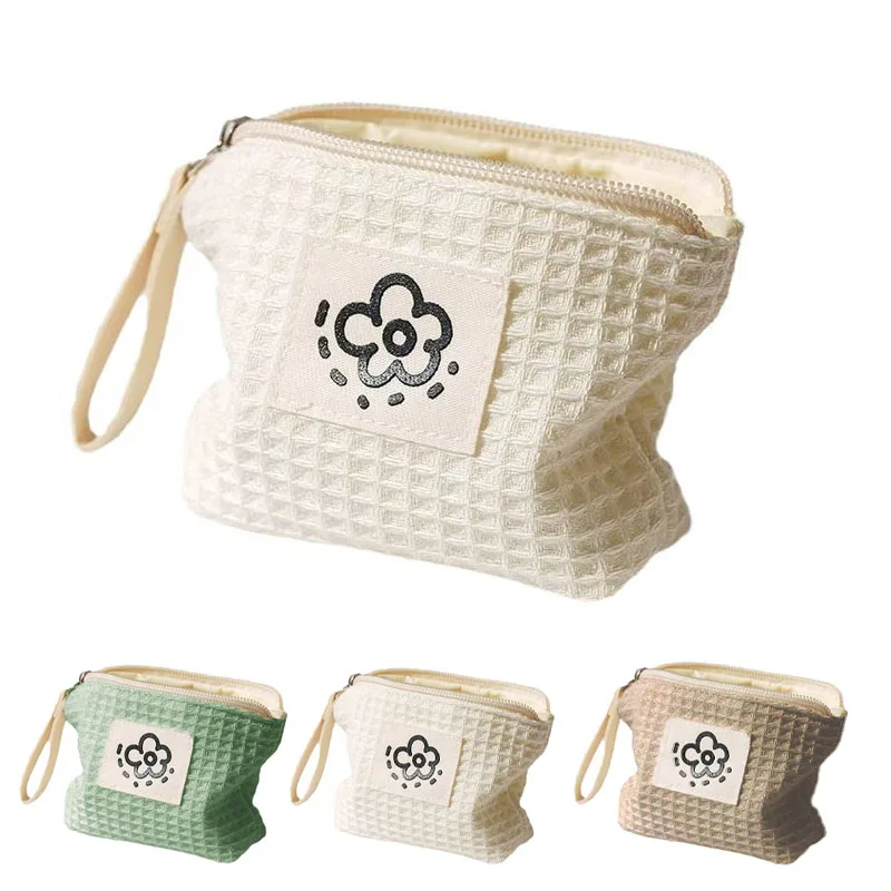 Women's Small Matcha Green Makeup Bag Portable Coin Purse Commuter Lipstick Headphones Storage Bag Double Canvas Chain Key Case $4.09