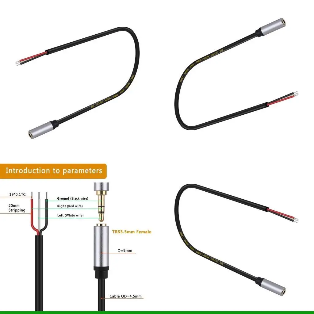 U55C 11.8inch Long 3.5mm Stereo Female Port to Bare Wire Cable Open End For Fixing Damaged Headphone and Speaker Wire $11.73