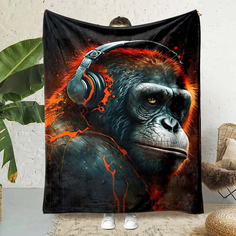1PC Fiery gorilla wearing headphones Print Blanket Warm Soft Fluffy Kids and Adult Sofa Bed Throw Outdoor Travel Camping RV $15.51