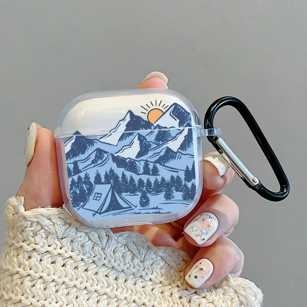 Sun Mountain Pattern Headphone Case D-shaped Buckle for AirPods Pro 3/Pro 2 /Pro/4 /3 /1or2 Headset Protective Cover Cute $4.10