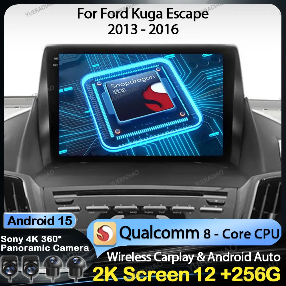 Android 15 Car Radio For Ford Kuga Escape 2013 - 2016 Head Unit GPS NAVI 4G LTE 5G WIFI Multimedia Stereo Video Player QLED BT $89.85