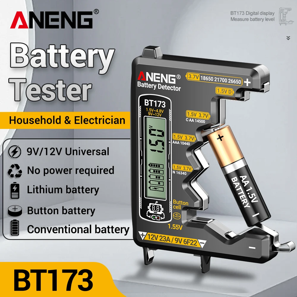 ANENG BT173 Portable Universal Battery Tester High Precision Digital Visual Display for most Common Batteries Electronics Tool $7.68
