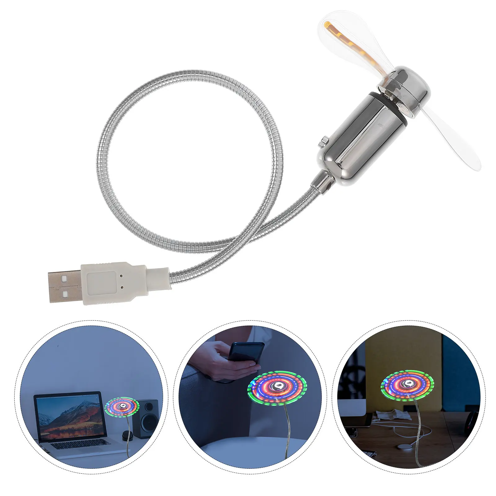 2Pcs Mini USB LED Fan with Colorful Rotating LED Patterns Desktop Cooling Gadget for Laptop Pc Office Use Gift for Men Seven $17.63