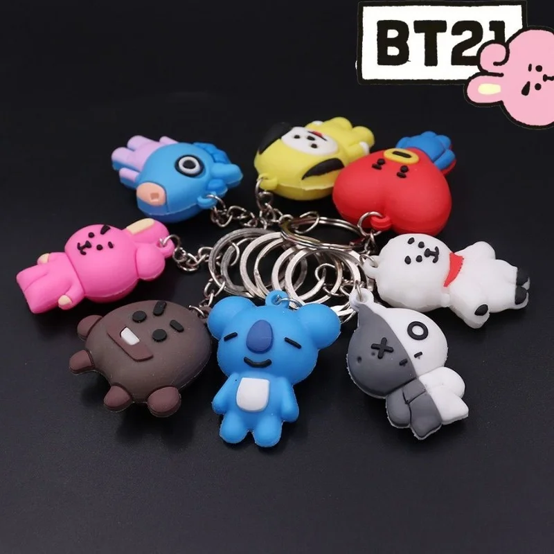 Creative BT21 Series Cute Cartoon Silicone Figurine Portable Keychain New Fashionable Unisex Versatile Decorative Pendant Gift $4.76