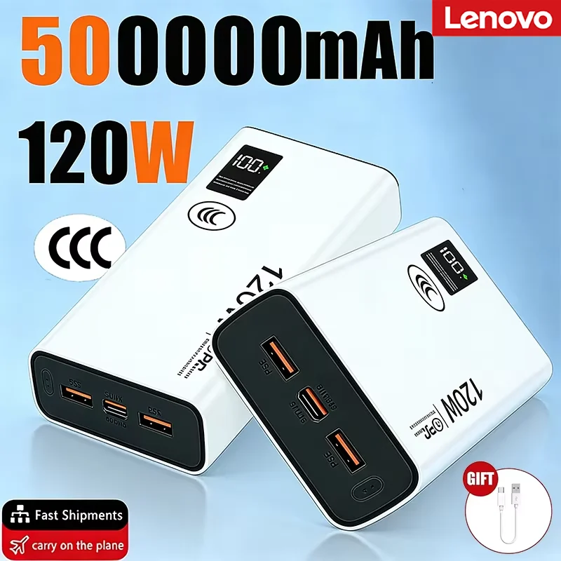 Lenovo 2026 Large Capacity 500000mAh Powerbank 120W Fast Charging LEDPower Bank Portable Battery Charger Supply For Iphone Samsu $18.75