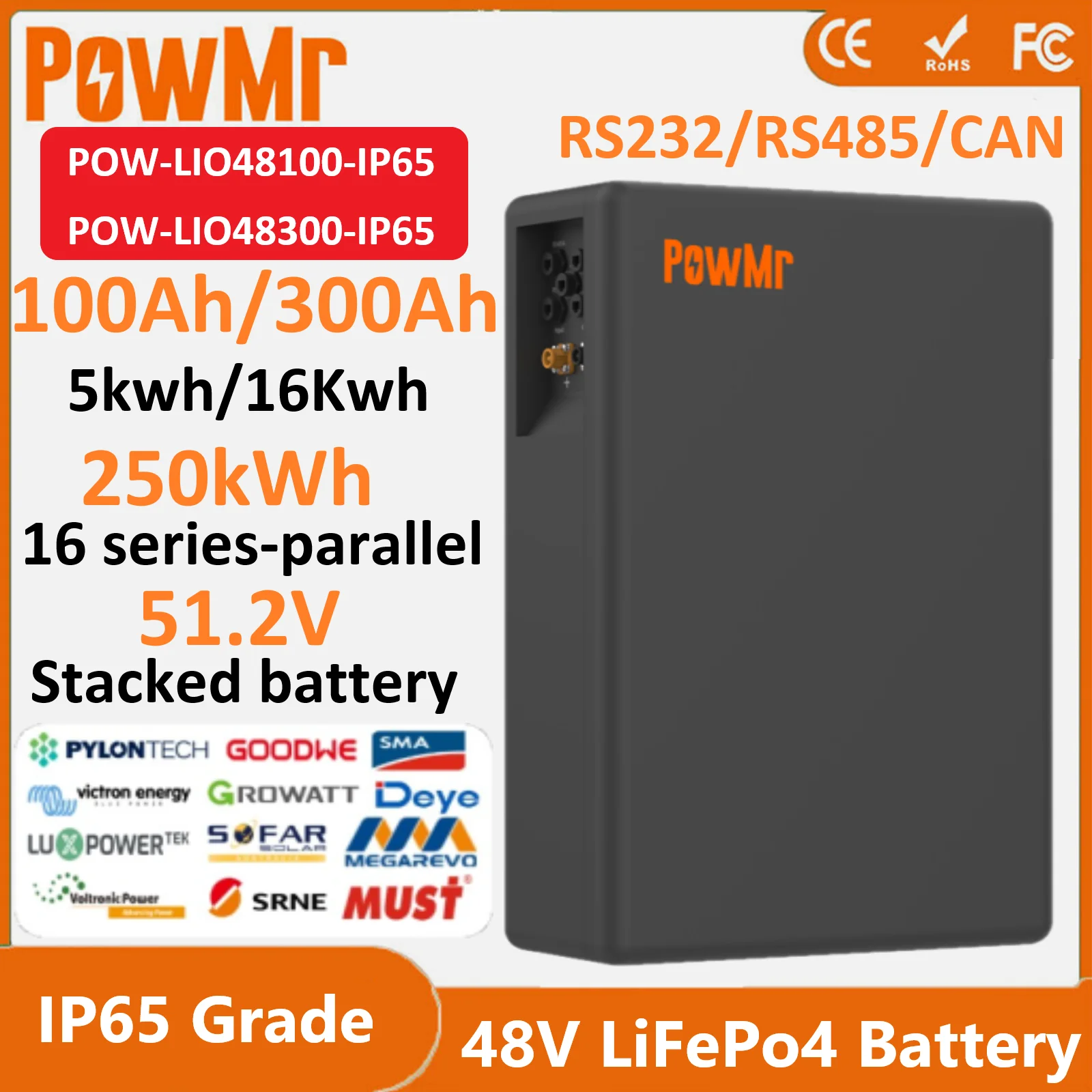 PowMr 48V IP65 Waterproof Battery 100AH 300AH LiFePO4 Battery Built-in BMS 6000+ Cycle 5KW/15KW Battery Pack Solar Power System $1,482.25