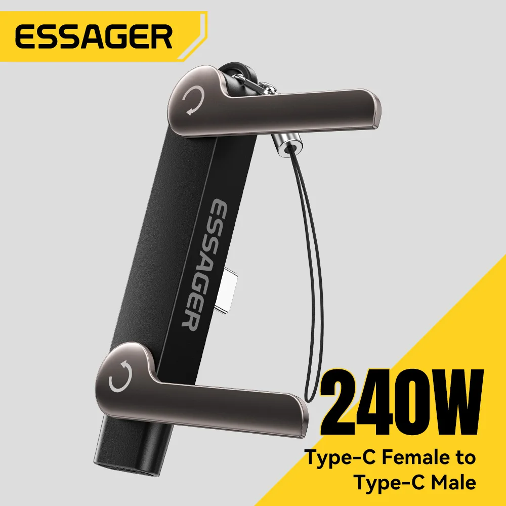 Essager 240W Type C Adapter 90 Degree Foldable OTG Adapter Type C Female to iP Male Converter For iPhone 17 Macbook pro Xiaomi $3.97