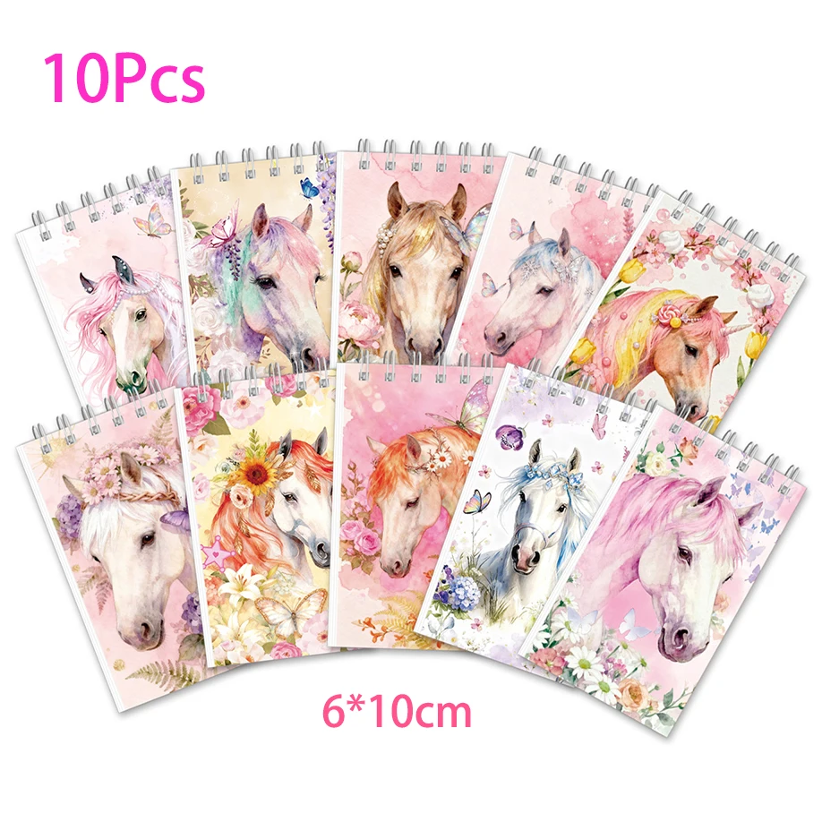 10Pcs Pink Horse Portable Coil Notebook Western Cowgirl Theme Mini Notepad for Kids Girl Birthday Party Favors School Rewards $6.35