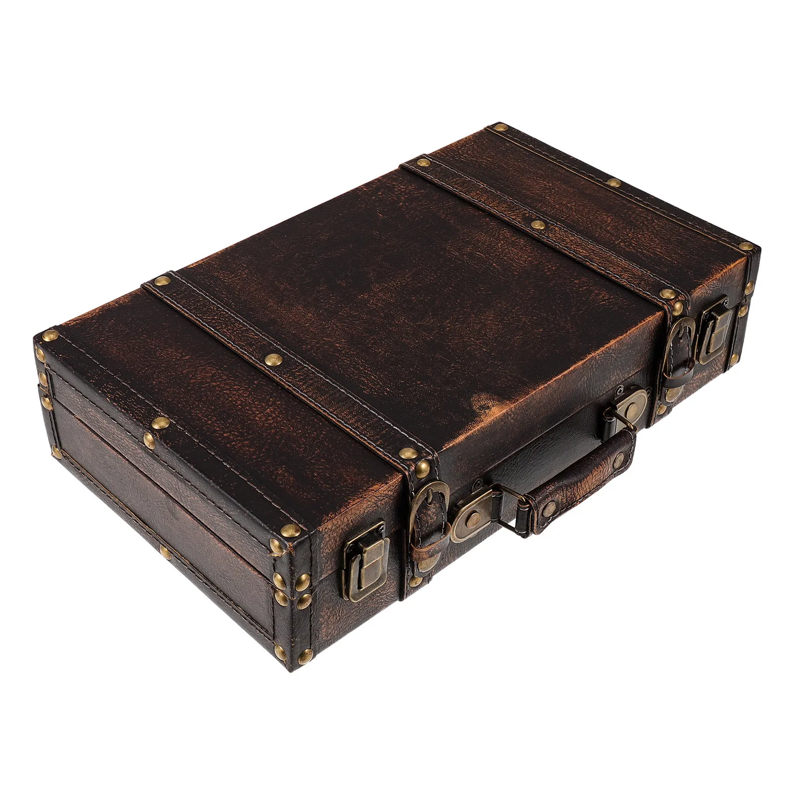 Vintage Suitcase Photo Prop Wooden Storage Chest Retro Luggage Display Box Decorative Wooden Keepsake Trunk Home Decor Organizer $39.56