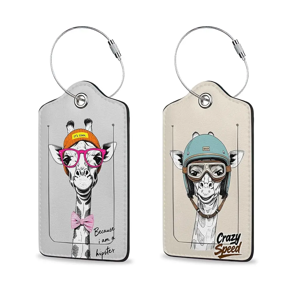 2 Pcs Luggage Tags for Suitcase, Funny Giraffe PU Leather Travel Bag Tag with Privacy Cover ID Label Address Card and Durable $14.91