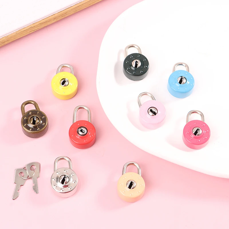 [7015]1Set Mini Round Shape Padlock Luggage Hardware Locks With Key Lock For Travel Wedding Jewelry Box Diary Book Suitcase $0.60