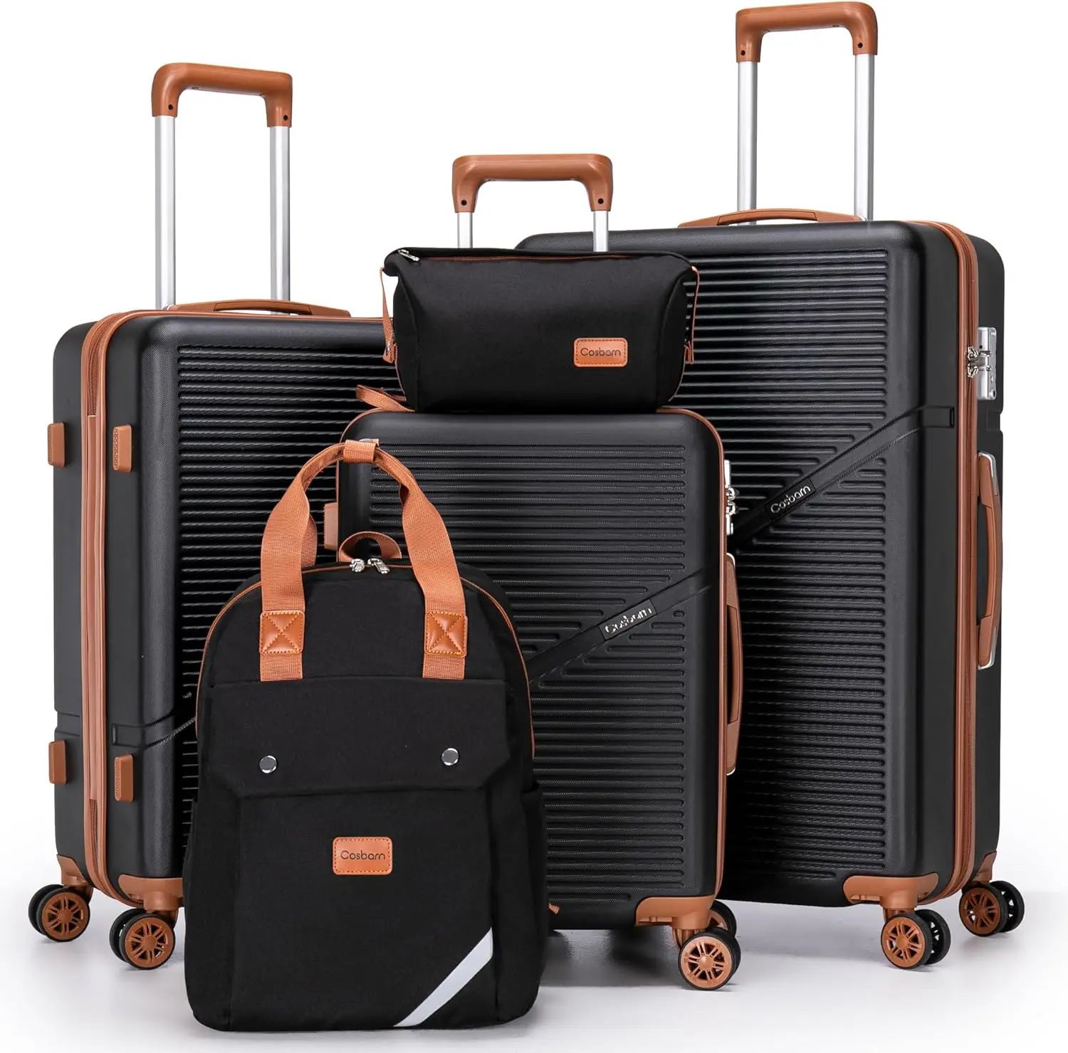 5-Piece ABS Hard Case Luggage Set with Spinner Wheels & TSA Lock, 20/24/28 Inch Suitcases for Durable Travel $124.83