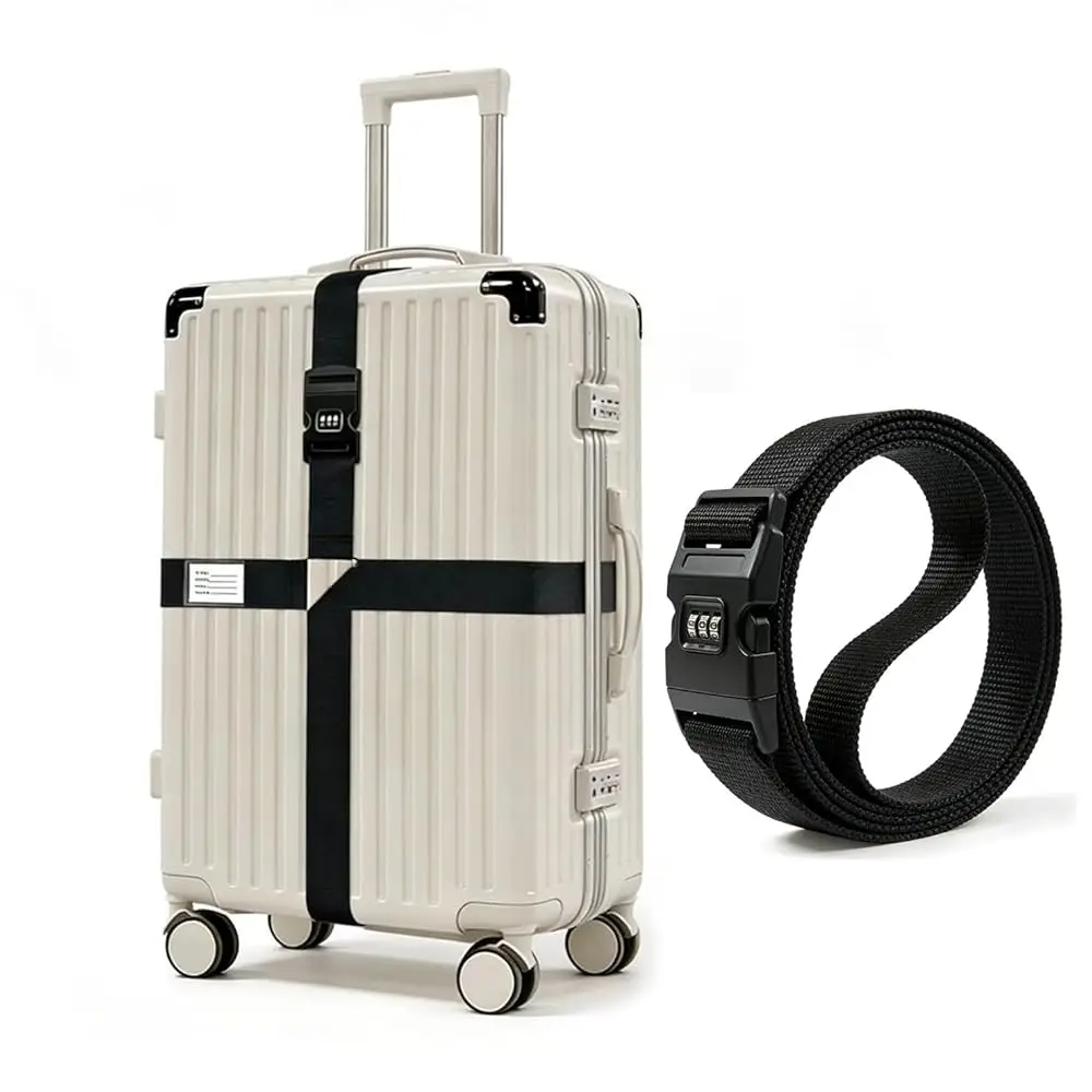 Cross-Strap,Combination Lock Luggage Straps, Adjustable Suitcase Belts, Secure Luggage (Black) $14.17