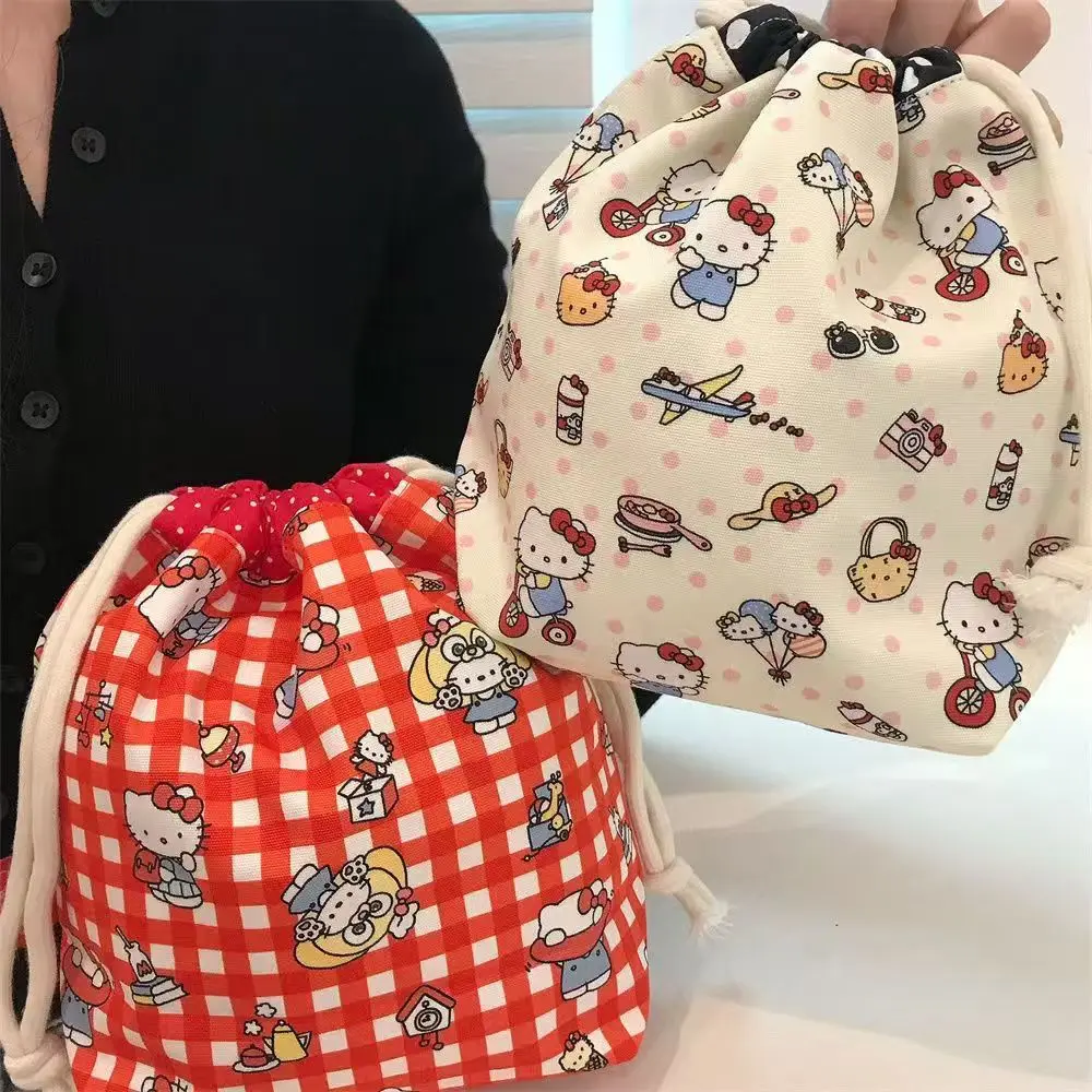 Sanrio Hello Kitty Printed Fabric Storage Bag KT Cat Drawstring Pocket Portable Travel Makeup Storage Bag Cosmetic Bag Gifts $6.93