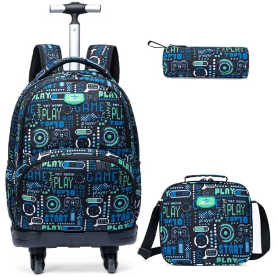 Rolling Backpack for Boys Gamepad Suitcases Trolley Roller Luggage Backpacks with 360° Rotating Wheels 15" Laptop 3PCS Lunch Bo $68.86