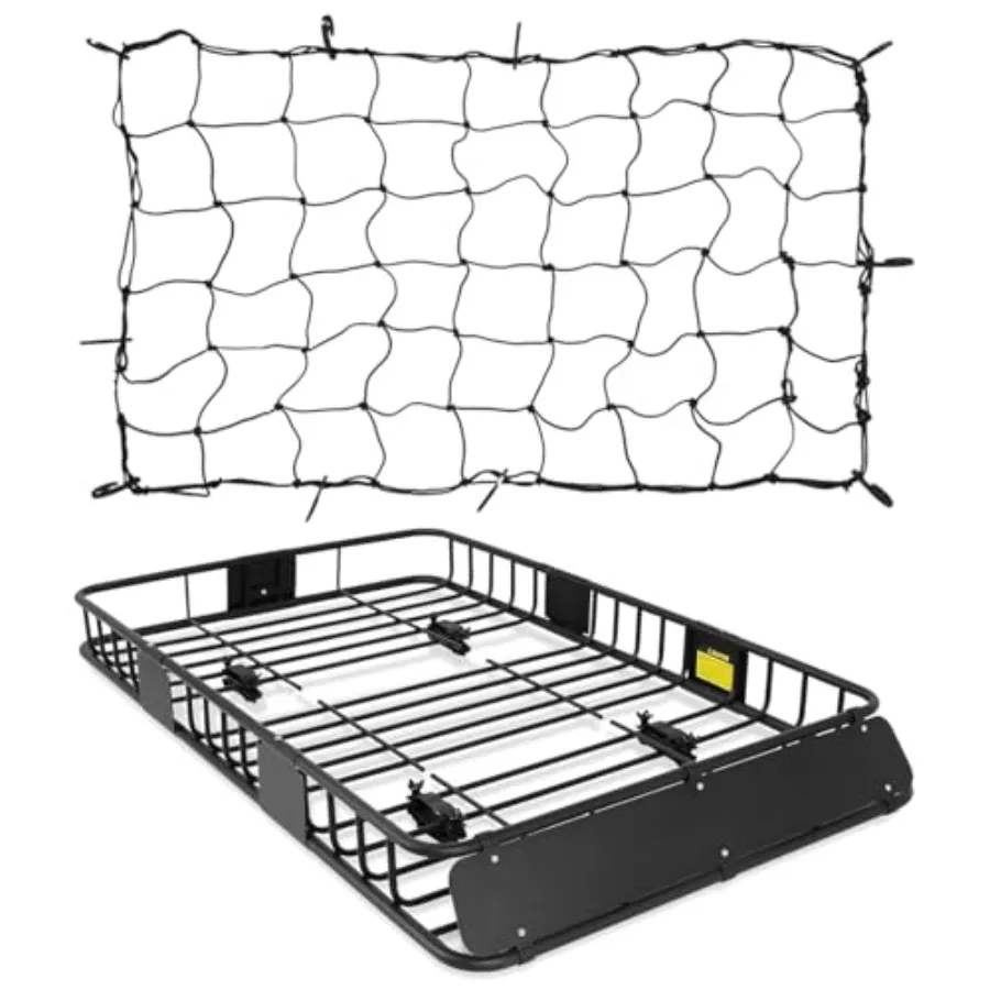 Heavy-Duty Steel Roof Rack Cargo Basket with Net Universal Rooftop Luggage Rack Cargo Carrier 64L x 39W x 6H Black Up to 250 Lb $206.66
