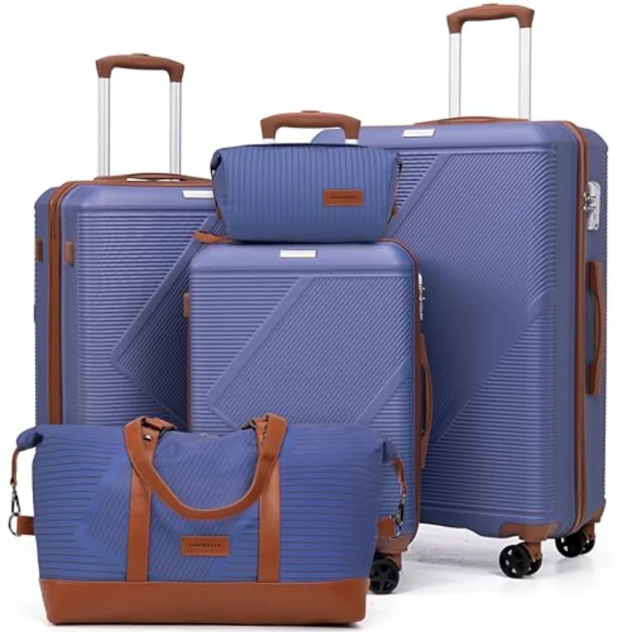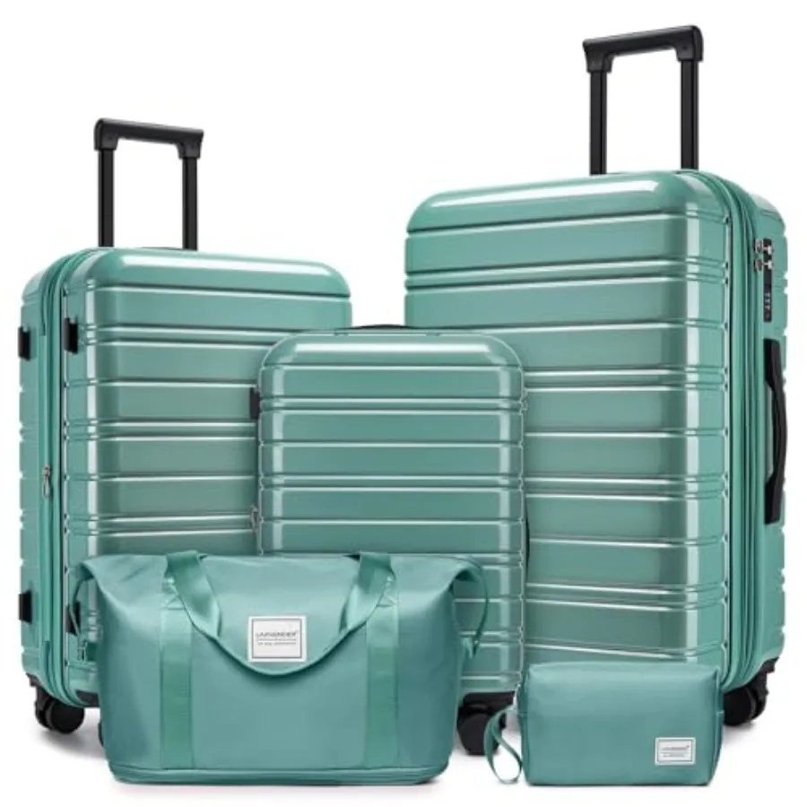 5 Piece Hardside Expandable Luggage Set with Wheels Lock Lightweight PC+ABS Rolling Suitcase for Women and Men in Glossy Misty $217.67