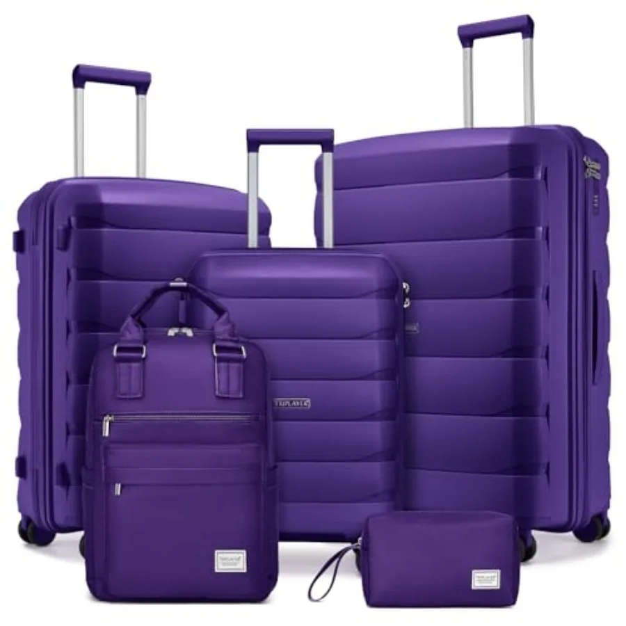 Luggage Sets 5 Pieces PP Hardshell Suitcase Set with Spinner Wheels for Women Purple Durable and Lightweight Travel Case $257.67