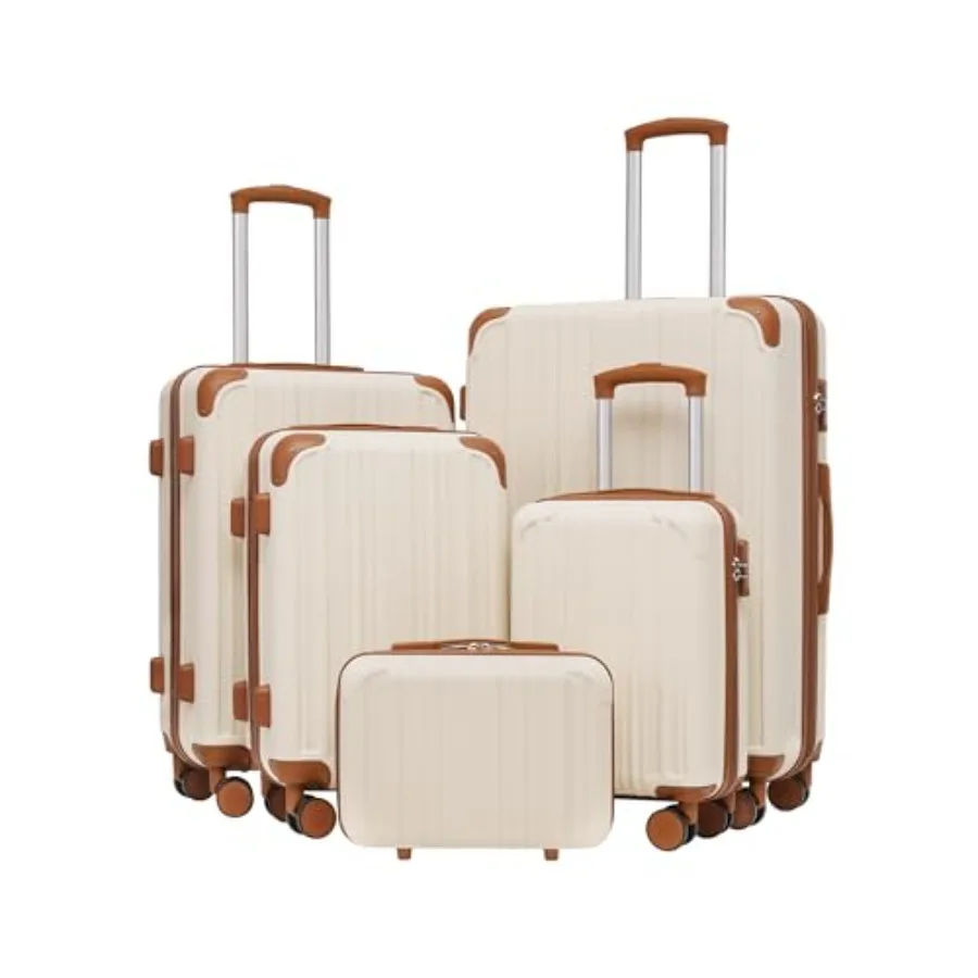 Coolife 5 Piece Luggage Set with ABS Hardshell Lightweight Carry On Suitcase in Apricot White Dual Spinner Wheels TSA Lock YKK $328.25