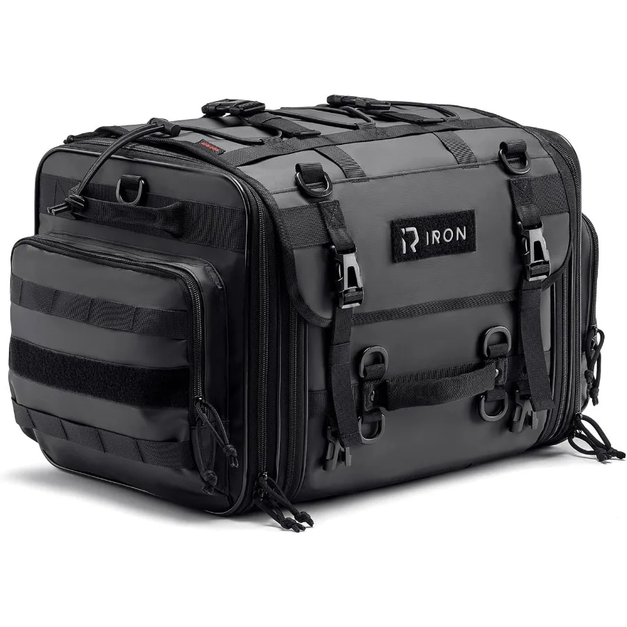 Motorcycle Tail Bag Expandable Travel Luggage 40L-60L Waterproof Rear Rack Trunk with Rain Cover and Sissy Bar Straps in Black $113.83