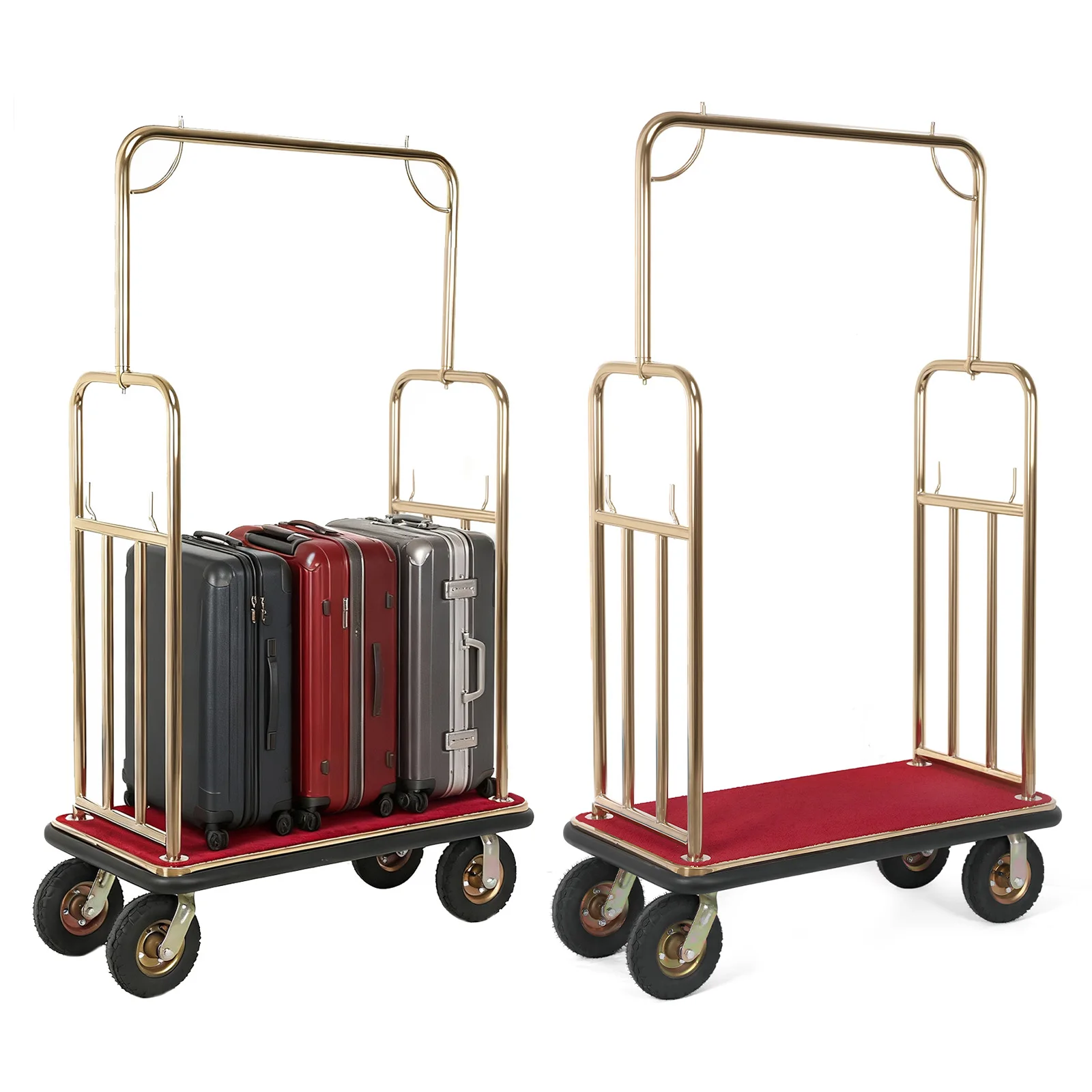 Hotel Luggage Cart 8-inch Silent Rubber Casters Bellboy Cart Carpet Deck Bumper Rails for Commercial Use Condos Resorts $315.90