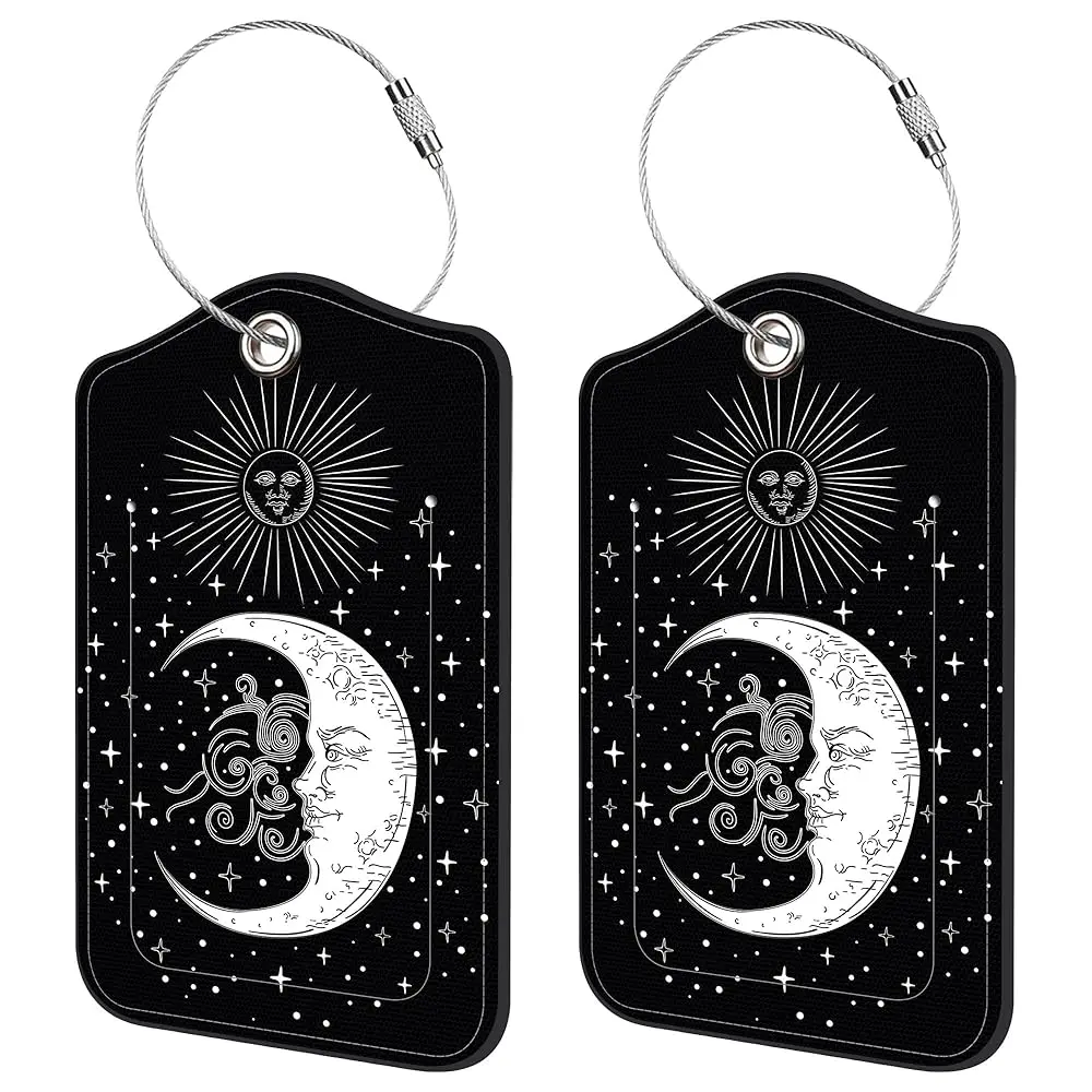 2 Pack Luggage Tags for Suitcase,Sun and Moon Face PU Leather Luggage Tags with Privacy Cover Name Address Labels and Steel R $18.22