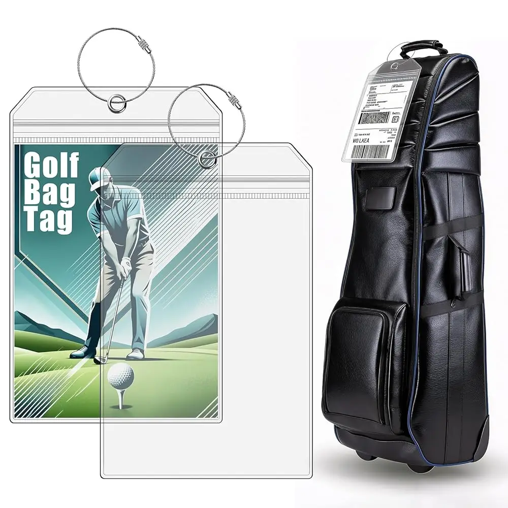2 Pack Extra Large Golf Bag Shipping Label Holder 9\ x 6\ – Heavy Duty Waterproof PVC Luggage Tag with Reinforced Grommet & S $13.25