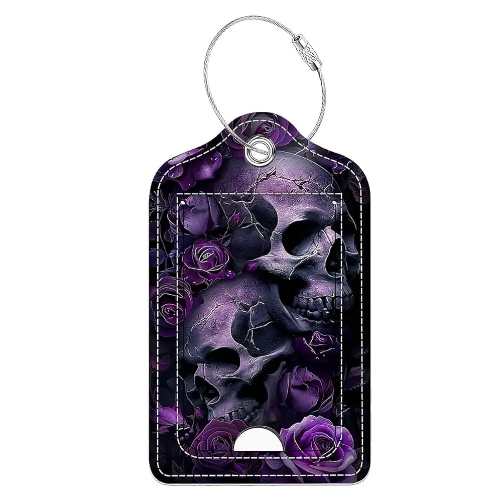 Luggage Tags,Purple Skull Rose Design, Double-Sided Privacy Cover ID Labels with Stainless Steel Loop and Address Card for Tr $14.91