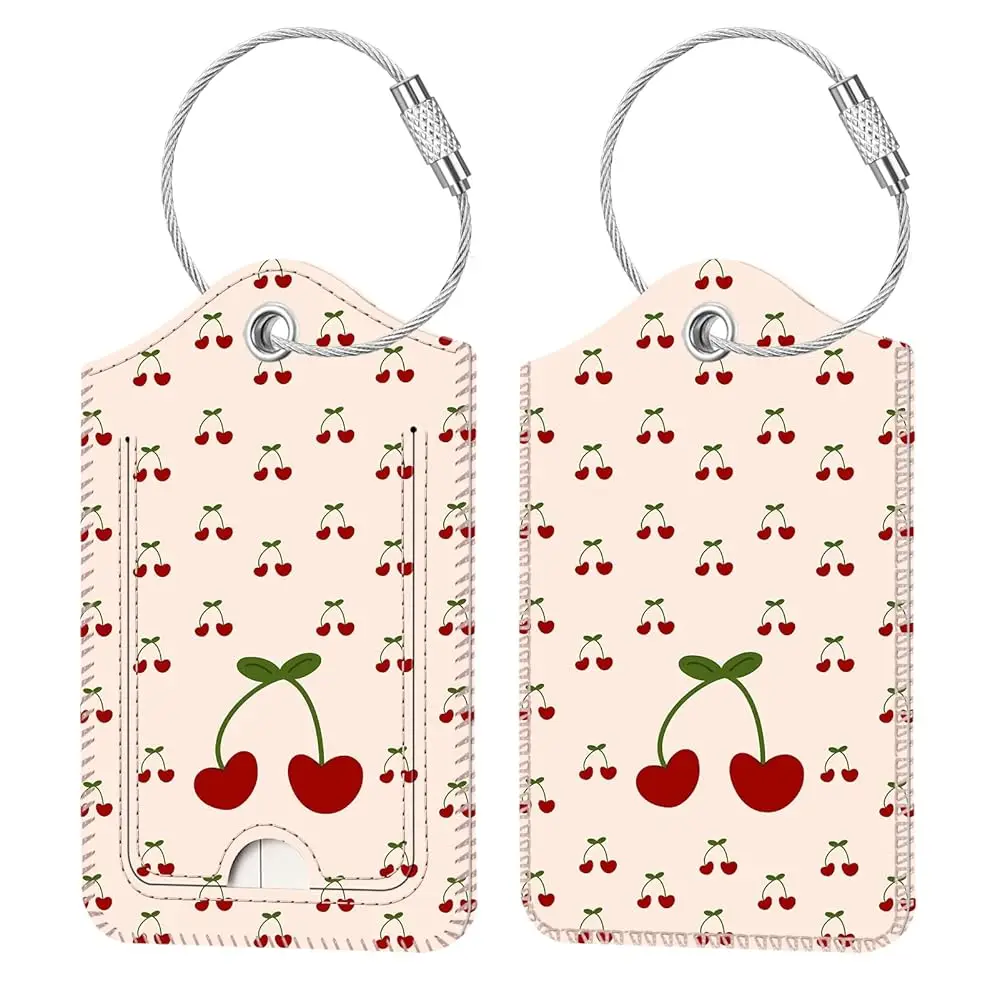 Fintie Luggage Tags, Privacy Cover ID Label with Stainless Steel Loop and Address Card for Travel Bag Suitcase - Cherry (2 Pi $11.60