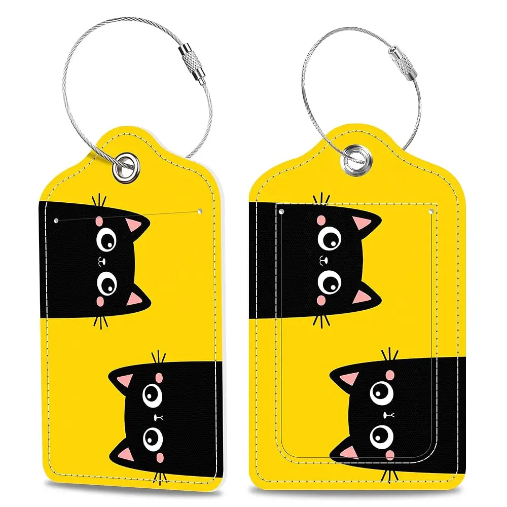 Set of 2 Luggage Tags Two Black Kitten Face Head Leather Suitcases Tag with Privacy Cover Stainless Steel Loop and Address Ca $14.91