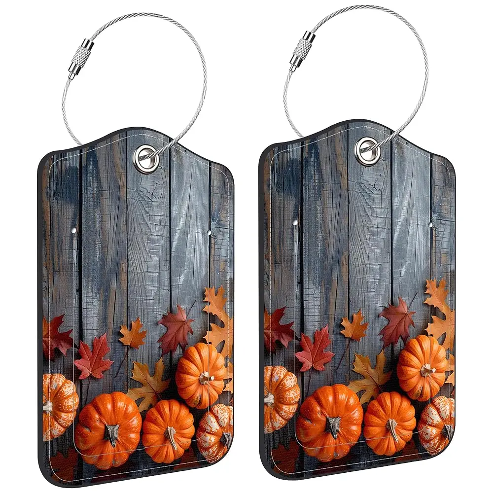 2 Pack Luggage Tag for Suitcase Thanksgiving Day Pumpkins Autumn Leaves Leather Suitcase Tags with Privacy Name ID Label and $9.94