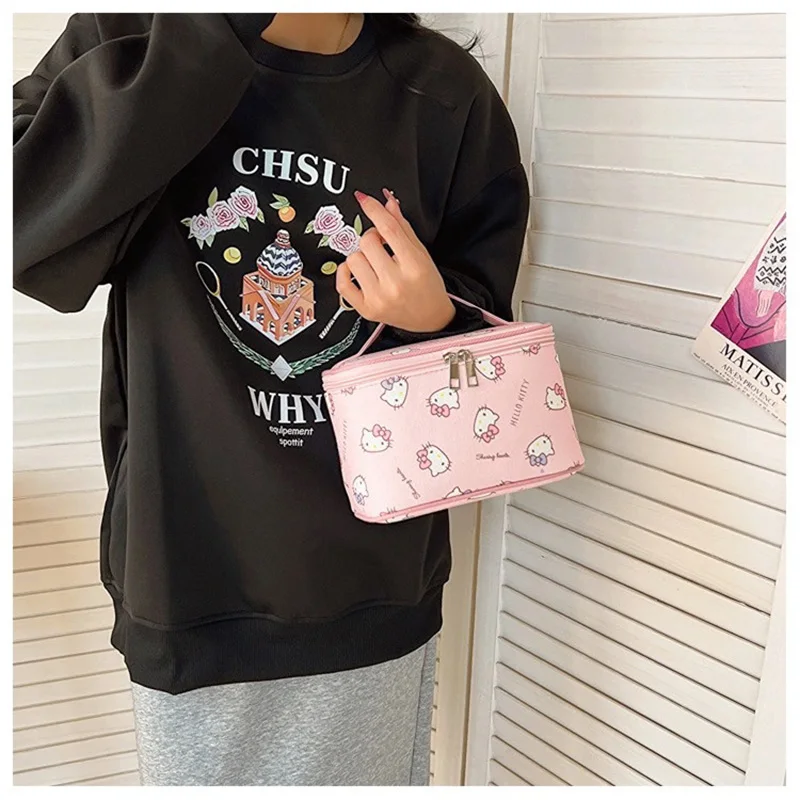 Hello Kitty Makeup Bag Kawaii Printed Makeup Bag Large Capacity Travel Toiletry Bag Portable Storage Bag New Year Gift $5.40
