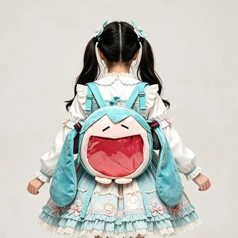 2026 New Hatsune Miku Bag Q Version Kawaii Figure Plush Bag Model Doll Plush Stuffed Toy Shoulder Bag Transparent Backpack Gifts $4.49