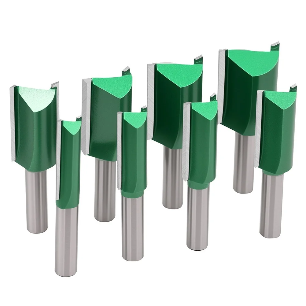 1/4"Shank Green Straight Router Bit Set 7-Piece,Single & Double Flute Straight Bits,Trimmer Bits,Grooving Cutters,CNC Engraving $12.68