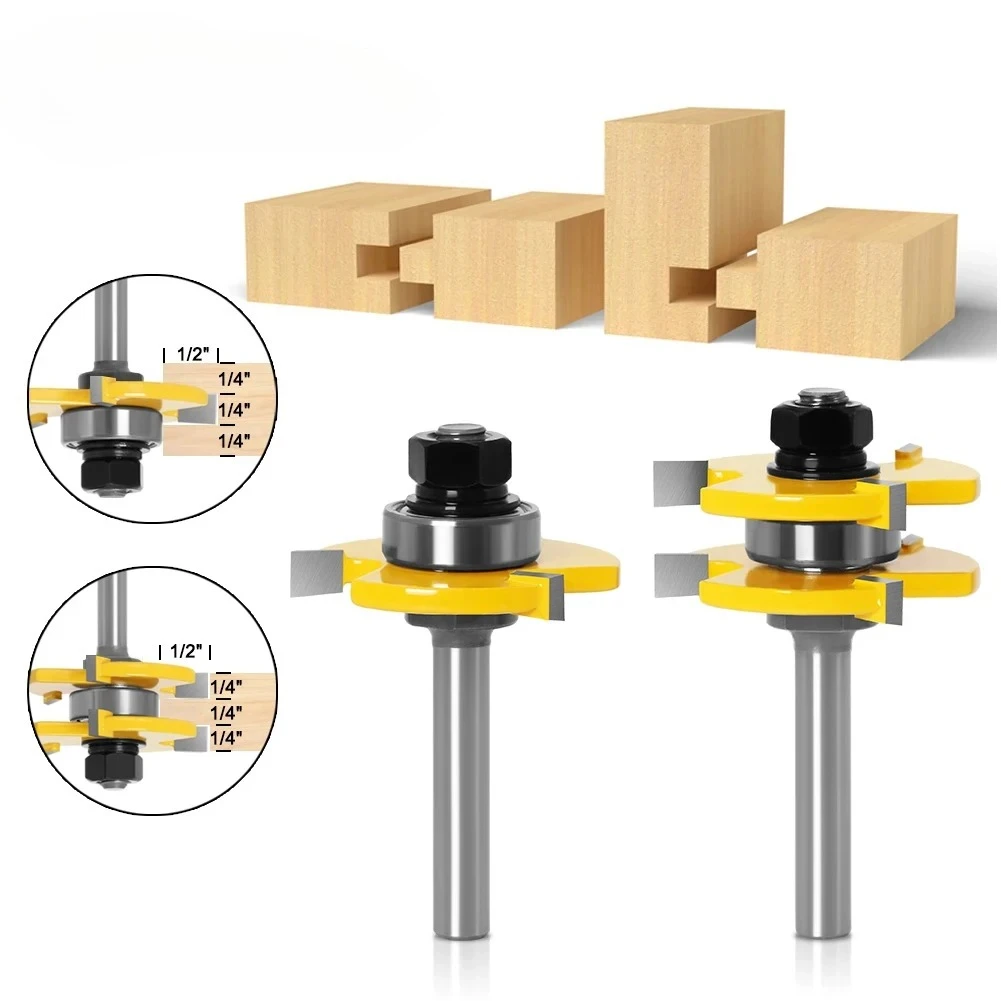 2pc 6/8/12mm 1/4in 1/2in Shank high quality Tongue & Groove Joint Assembly Router Bit Set 3/4" Stock Wood Cutting Tool - RCT $17.10