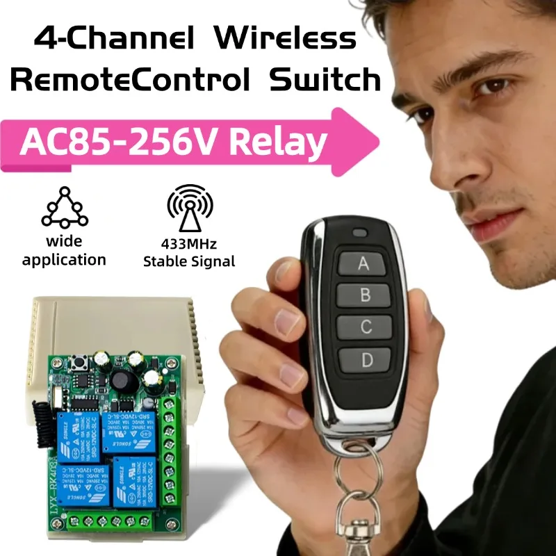 Smart Multiple AC85V 220V 230V 256V 10A 433 MHz 4CH Wireless Relay RF Remote Control Switch Receiver+ 4 Button Transmitter $4.27