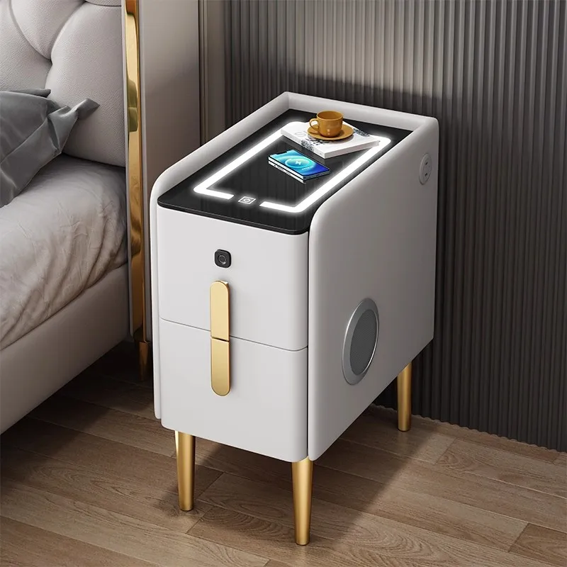 8H smart bedside table fingerprint wireless charging safe password cabinet networking night light speaker multi-function $794.24