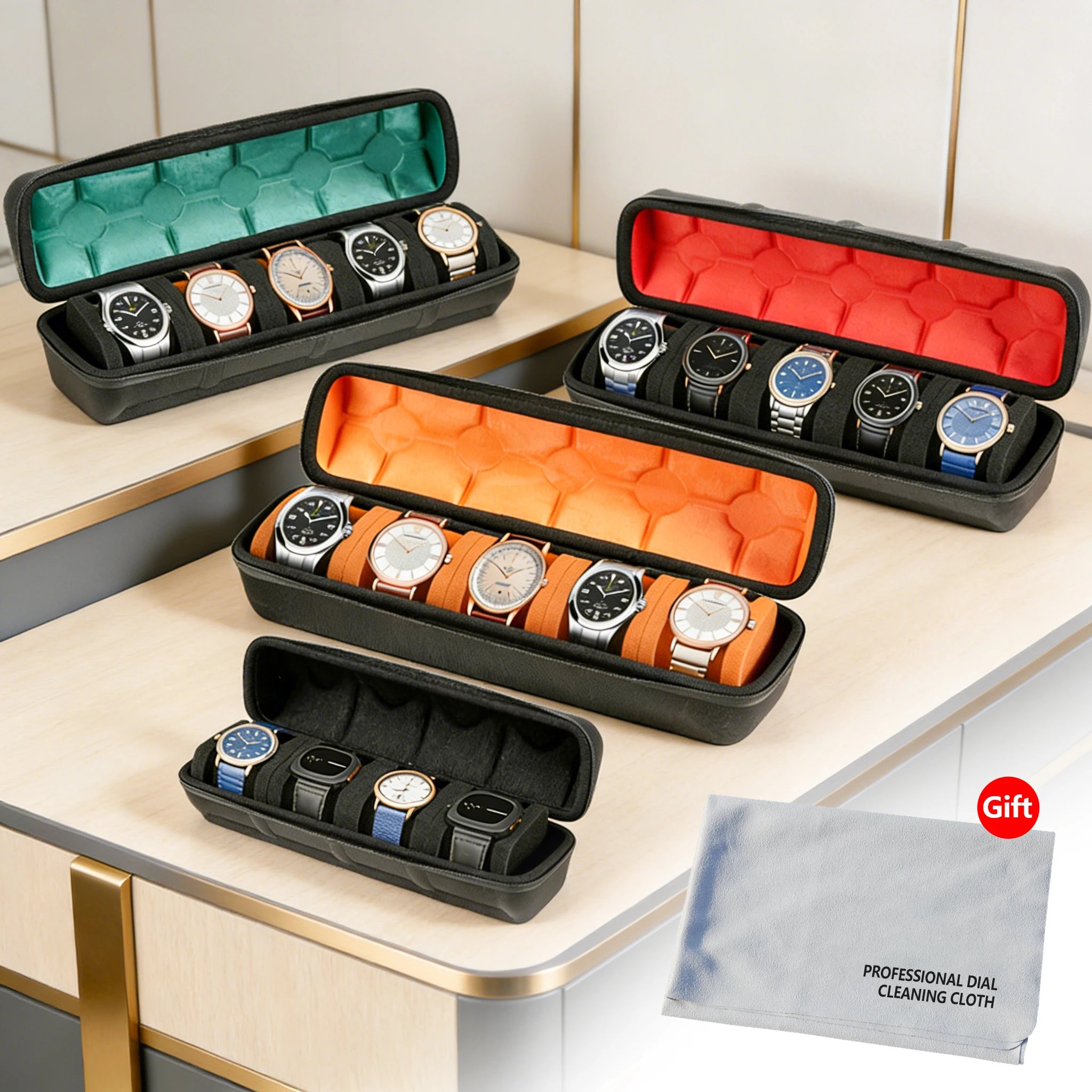 1pc 5-Slot Watch Case | Hard Shell Travel Organizer with Pillow Insert - Gift Ready (Black),suitable for smart watch storage $7.57